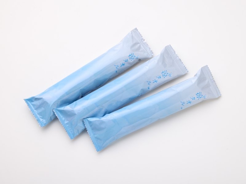 肌触りのよいレーヨン不織布を使用した個包装の使い捨て冷感タオルです。心地よい冷感が得られます。