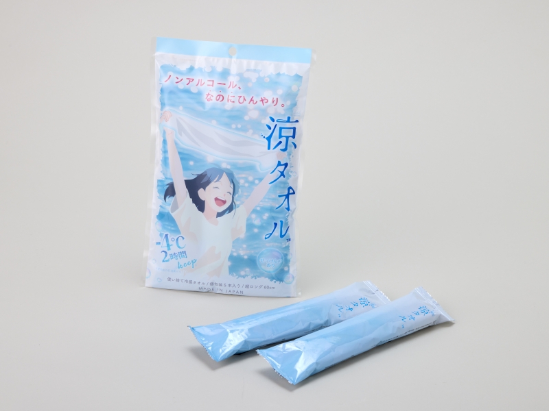 肌触りのよいレーヨン不織布を使用した個包装の使い捨て冷感タオルです。心地よい冷感が得られます。